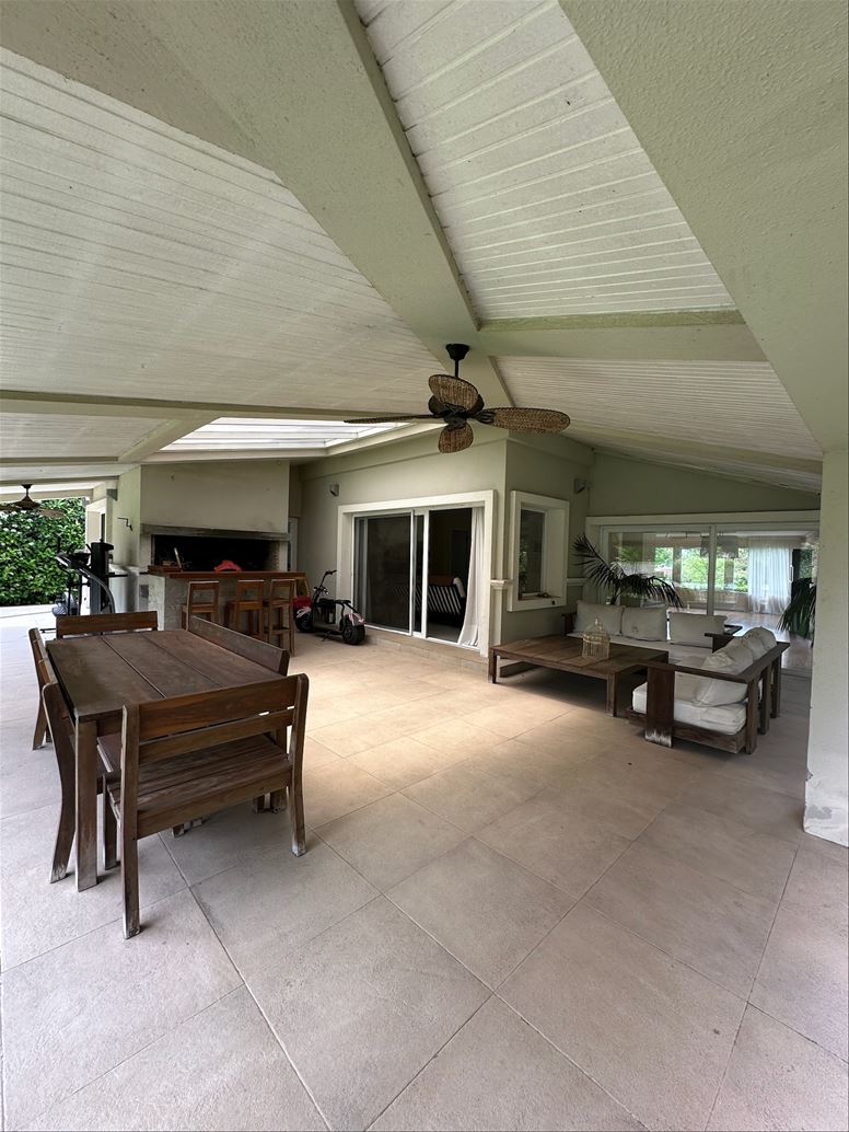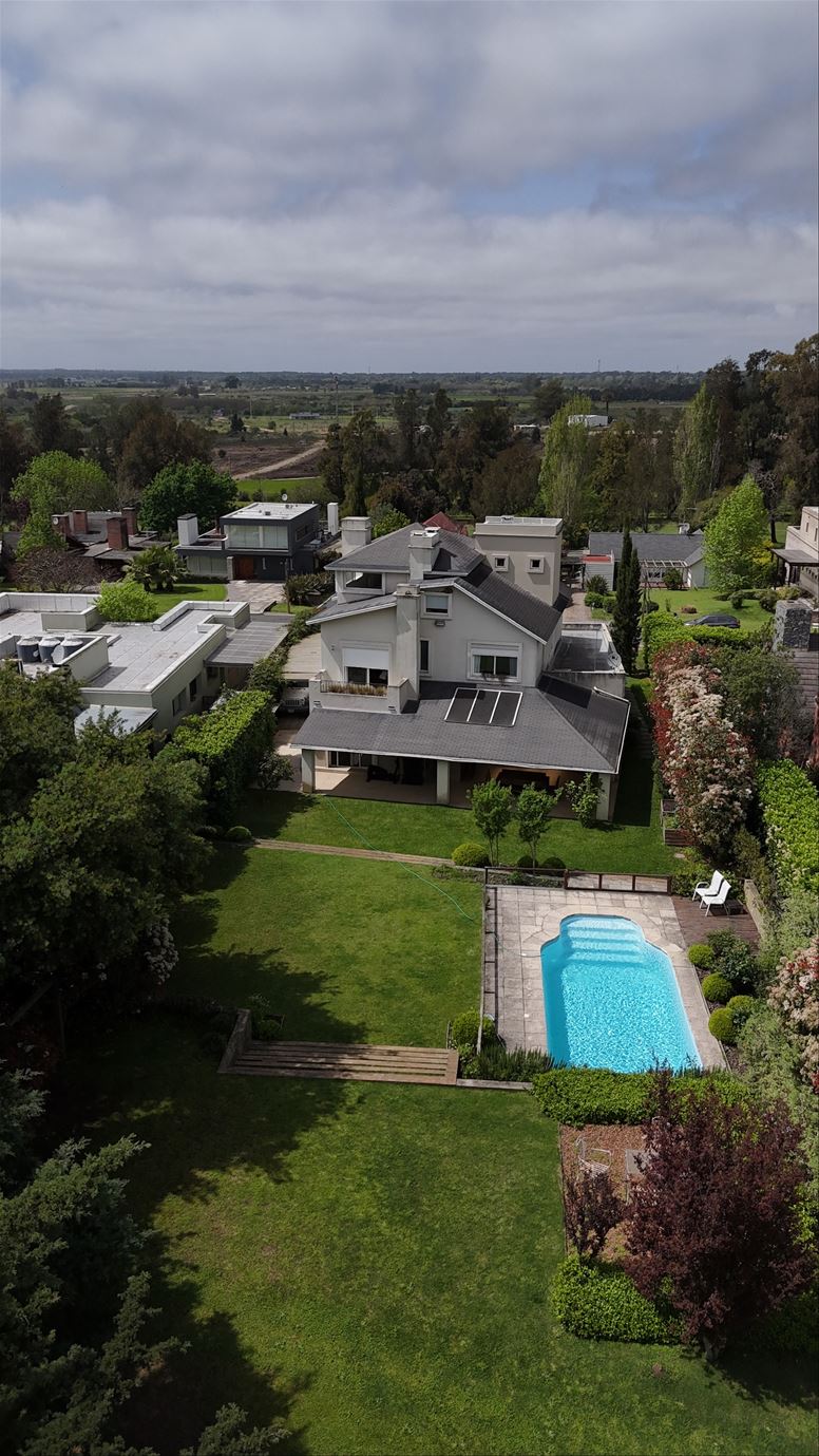 En el exterior; una piscina rodeada de un paisajismo espectacular, una gran galeria con parrillero integrado al verde.