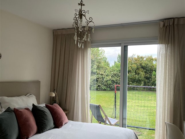 En el fondo, un gran patio con piscina invita a disfrutar del aire libre y el sol. Además, dispone de una barbacoa con amplio parrillero, perfecta para reuniones y momentos en familia.